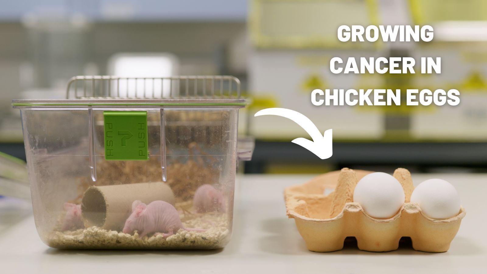 The film also follows Maddy George, a research assistant in the Witney Lab, as she shows the process of growing cancer in chicken eggs, PET imaging the tumours, and subsequently analysing the data.