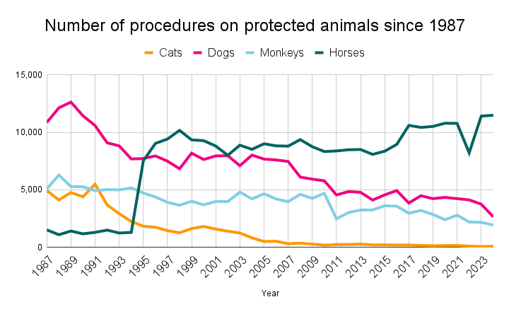 Download 'Number of procedures on protected animals since 1987'